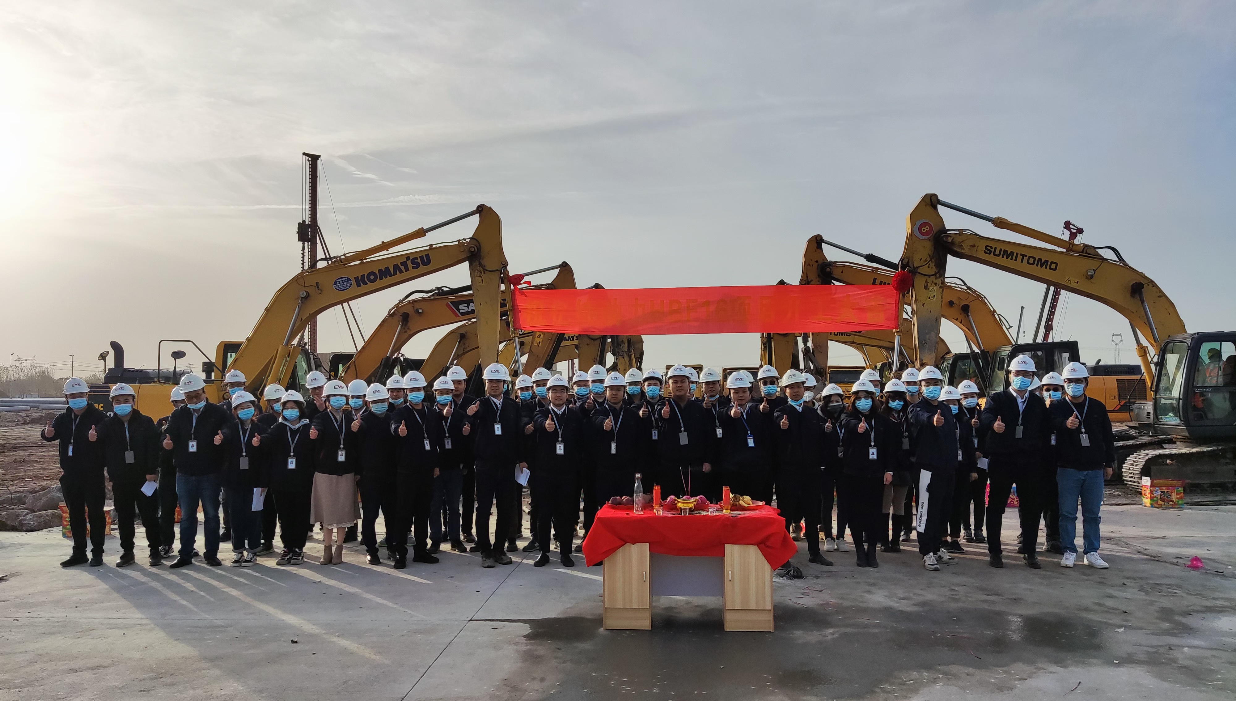 2021年11月22日上午8时,伴随着震天的礼炮、缤纷飘落的礼花和现场热烈的掌声与欢呼声,亿纬动力HBF16项目开工典礼在万众瞩目中拉开帷幕。现场数辆挖掘机纷纷伸出“铁臂”开挖,宣告该项目全面动工。在一片祥和喜庆的景象中,到场的领导嘉宾和工人朋友们共同见证了这一辉煌时刻。