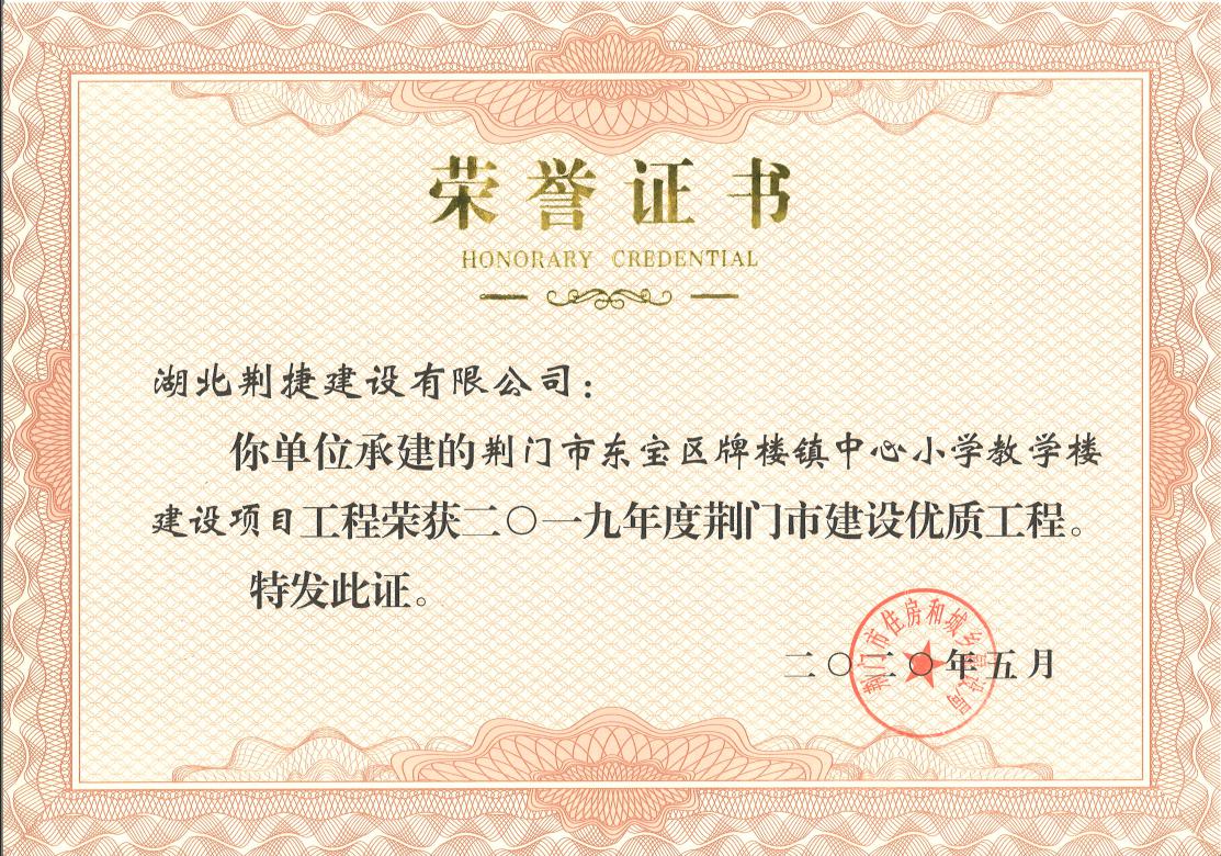 牌楼镇中心小学(2019年度)荆门市建设项目优质工程