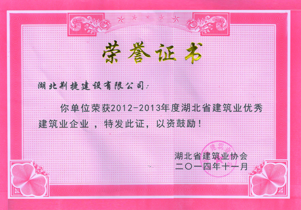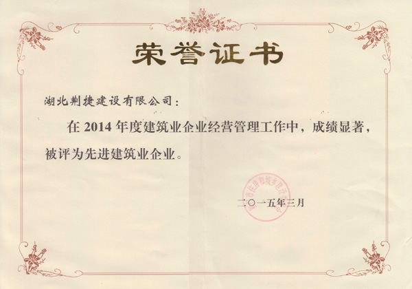 先进建筑企业荣誉证书