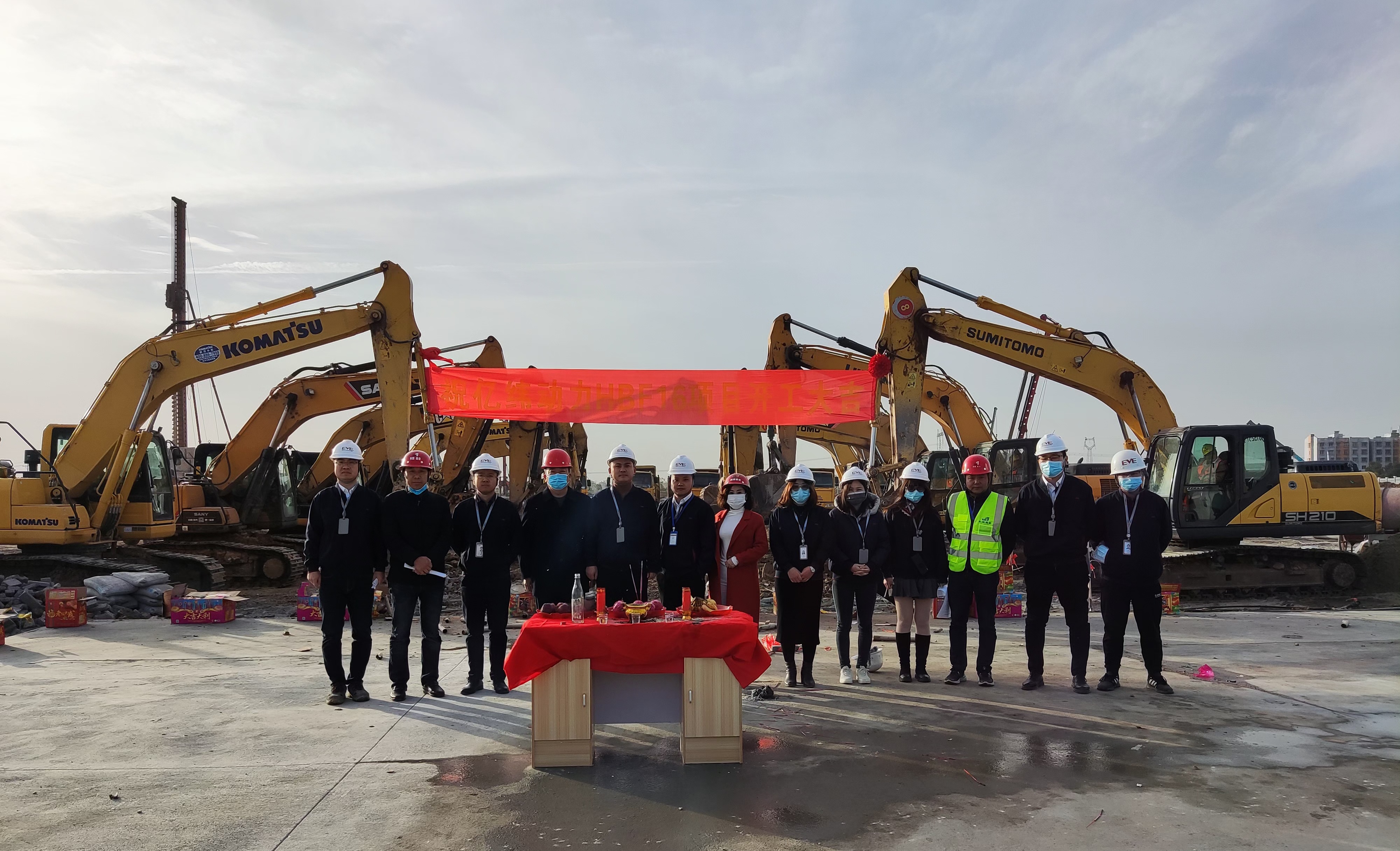 2021年11月22日上午8时,伴随着震天的礼炮、缤纷飘落的礼花和现场热烈的掌声与欢呼声,亿纬动力HBF16项目开工典礼在万众瞩目中拉开帷幕。现场数辆挖掘机纷纷伸出“铁臂”开挖,宣告该项目全面动工。在一片祥和喜庆的景象中,到场的领导嘉宾和工人朋友们共同见证了这一辉煌时刻。