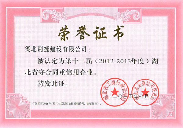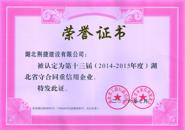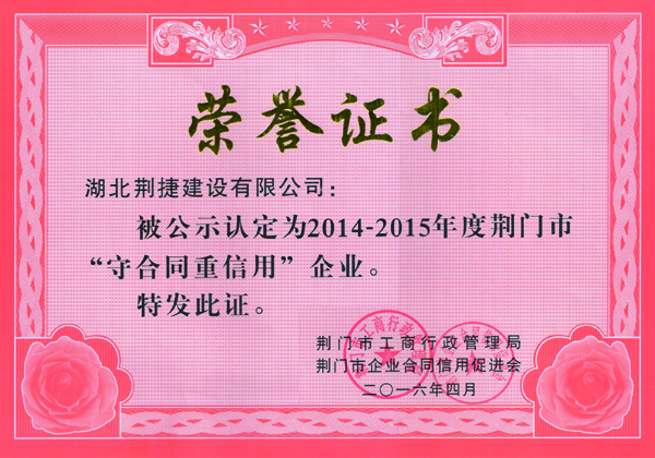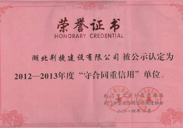 重合同守信用荣誉证书