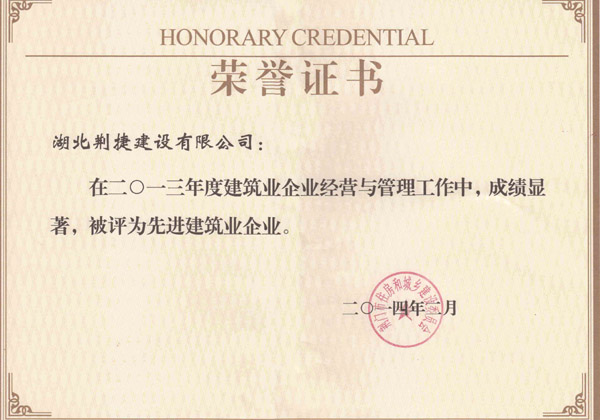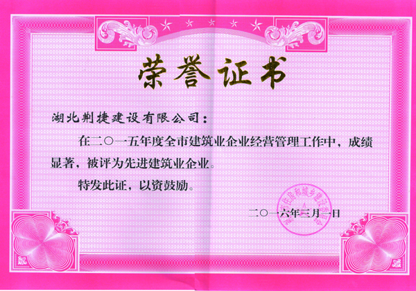 先进建筑企业荣誉证书
